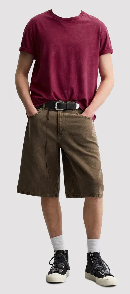 Loose-fit jorts (jean shorts) hitting just above the knee