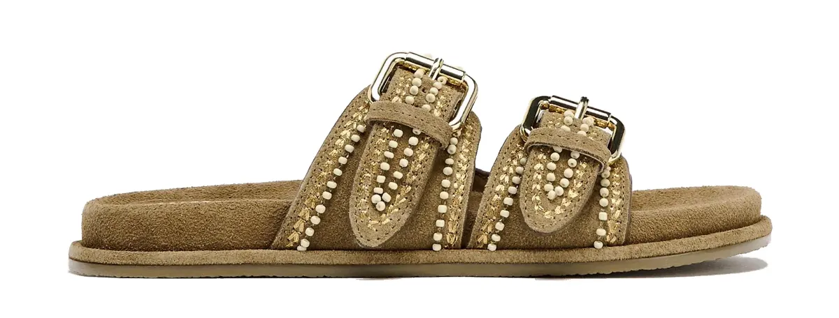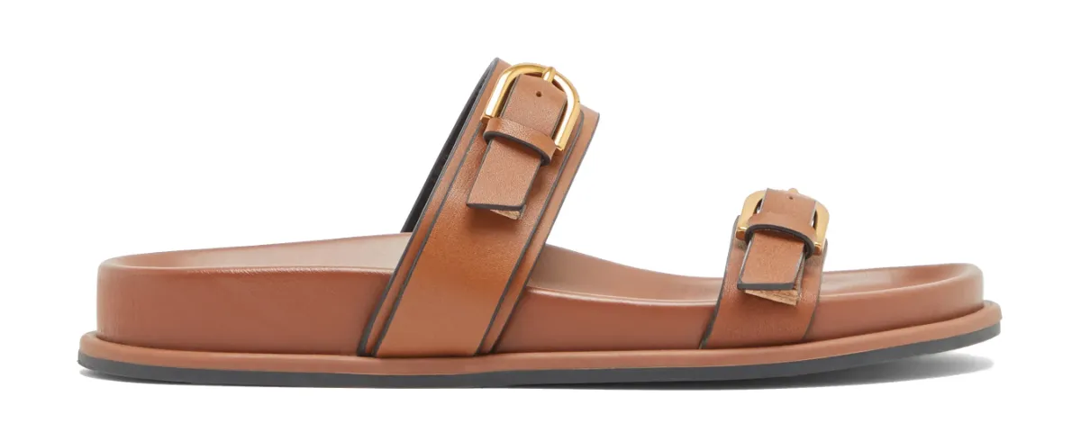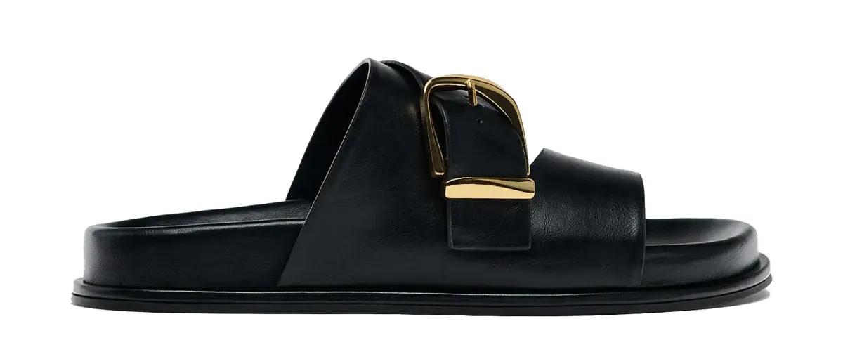 • The upgrade: Designers have elevated the classic comfort sandal with premium materials, sleek leather, and fashion-forward accents like gold buckles and subtle studs.